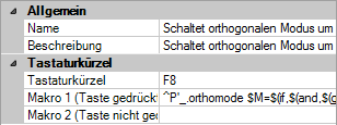 - Geben Sie im Feld Makro 2 (Taste nicht gedrückt) ein Makro ein, das ausgeführt werden soll, wenn die Taste für temporäre Überschreibung freigegeben wird. Wenn kein Wert definiert ist, werden die Anwendung und die Zeichnungseinstellungen wieder in ihren vorherigen Zustand zurückgesetzt (bevor die temporäre Überschreibung ausgeführt wurde), wenn die Taste freigegeben wird.