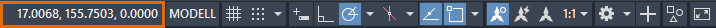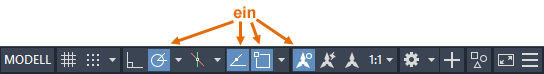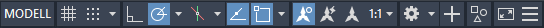 Über die Statusleiste können Sie schnell auf einige der am häufigsten verwendeten Zeichnungshilfen und -werkzeuge zugreifen. Dies ist die vorgabemäßige Statusleiste.
