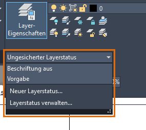 Anmerkung: Bei Verwendung der Dropdown-Liste Layerstatus in der Multifunktionsleiste können Sie den Mauszeiger über einen Layerstatusnamen bewegen, um eine Voransicht des Layerstatus anzuzeigen.