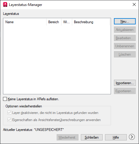 Das Dialogfeld Layerstatus-Manager wird geöffnet.