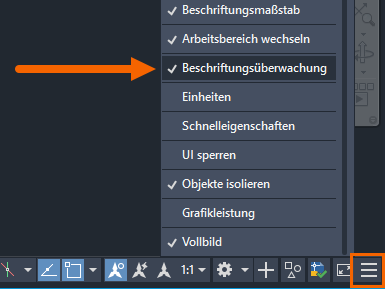 Wenn die Statusleisten-Schaltfläche Beschriftungsüberwachung nicht angezeigt wird, klicken Sie auf Benutzeranpassung