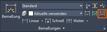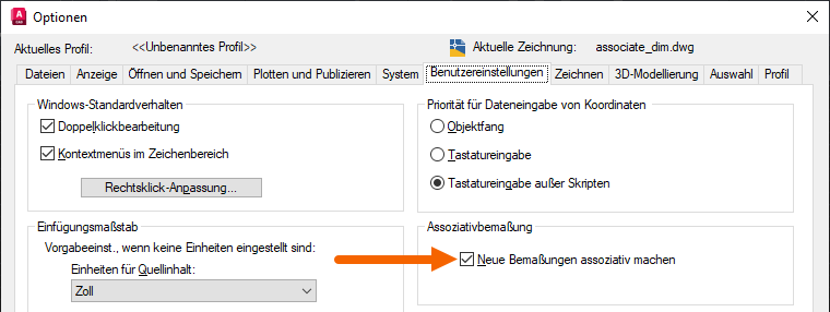 Standardmäßig sind alle neuen Bemaßungen assoziativ. Dies kann im Dialogfeld Optionen geändert werden.