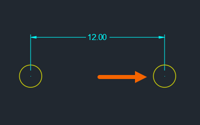 Beachten Sie, dass die gelbe Markierung nicht mehr auf der Bemaßung angezeigt wird. Dies gibt an, dass die Bemaßung jetzt mit den Mittelpunkten der beiden Kreise verknüpft ist.