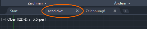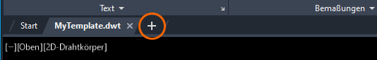 Eine einfache Möglichkeit zum Testen der Änderungen an der Vorlage besteht darin, sie zuerst zu speichern und dann auf den Zeichnungsregisterkarten auf das Pluszeichen (+) zu klicken, um eine neue Zeichnung zu erstellen. Wenn die Vorlage für Tests geöffnet bleibt, können Sie Änderungen an der Vorlage sehr schnell vornehmen.