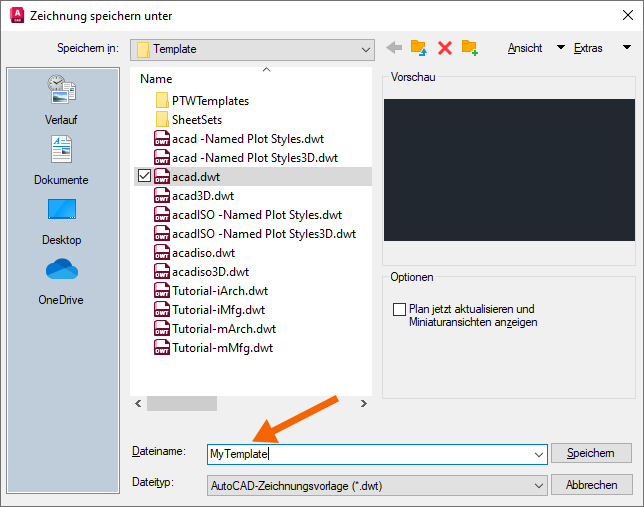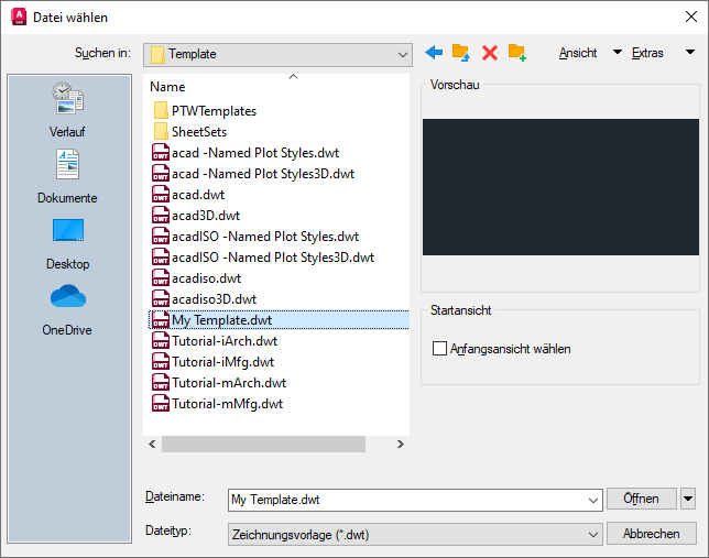 Wenn Sie jetzt eine neue Zeichnung beginnen, verwendet AutoCAD die Vorlage MyTemplate.