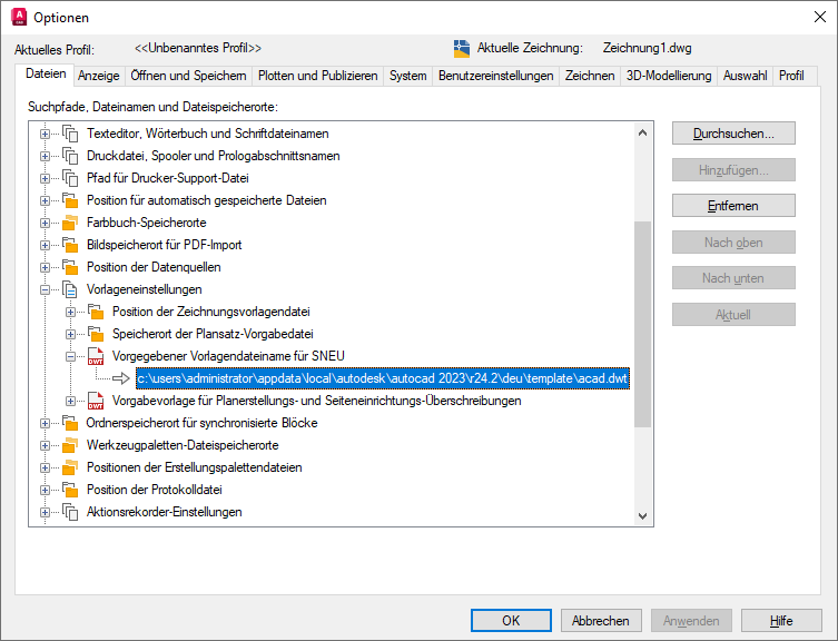 c:\Users\<Benutzername>\AppData\Local\Autodesk\AutoCAD 2021\R24.0\deu\Template\