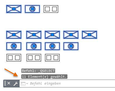 Die angegebenen Blöcke sind nun markiert und in einem neuen Auswahlsatz enthalten. Eine genaue Anzahl der angegebenen Blöcke wird im Befehlsfenster angezeigt.