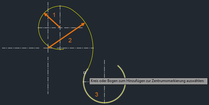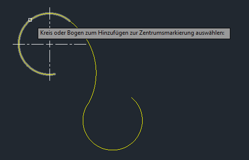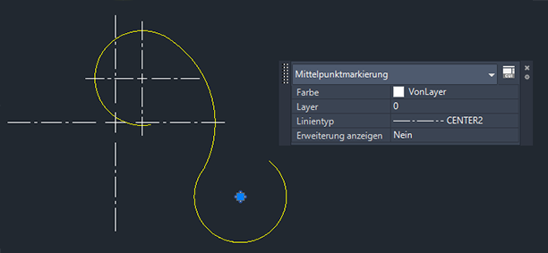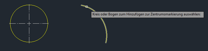 Sie können auch in der Befehlszeile ZENTRUMSMARKIERUNG eingeben.