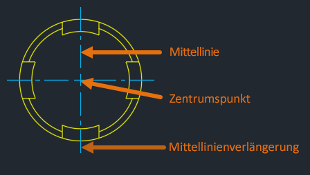 Beim Erstellen einer Mittelpunktmarkierung werden drei Hauptteile gezeichnet.