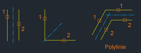 | ZENTRUMSLINIE | Erstellt die Geometrie der Mittellinie in Zusammenhang mit ausgewählten Linien und linearen Polylinien-Segmenten. |