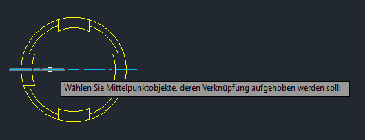 Die Assoziativität kann auch bei Bedarf von Mittelpunktmarkierungen oder Mittellinien entfernt werden.