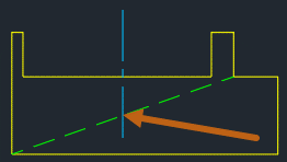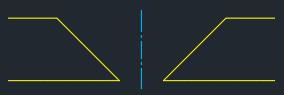 Ich verwende den Befehl ZENTRUMSLINIE und wähle Linie 1 und Linie 2 aus, um eine Mittellinie zu erstellen. Haben Sie bemerkt, dass die Mittellinie nicht über die Unterseite der Konstruktion hinausgeht? Das liegt daran, dass die Linien, die ich für die Mittellinie ausgewählt habe, nicht die gleiche Länge haben.