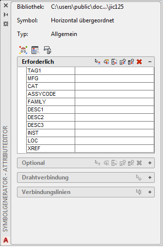 Sie sind jedoch nicht auf diese Attribute beschränkt und können in die AutoCAD Electrical toolset-Blockdateien auch eigene, benutzerdefinierte Attribute aufnehmen.