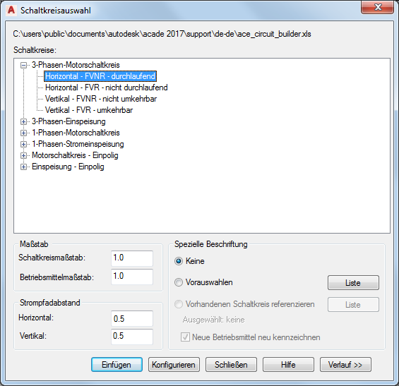 Verwenden Sie den Schaltkreis-Designer, um 3-Phasen-Motorschaltkreise einzufügen und zu konfigurieren.