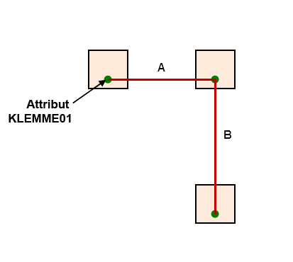 Die folgenden Diagramme zeigen, dass BLÄNGE eine gerade Abstandslinie zwischen Klemmen ist, die horizontal (Linie A) oder vertikal (B) ausgerichtet sind. Andernfalls wird bei der berechneten Länge davon ausgegangen, dass der Draht in rechtwinkligen Biegungen (Linie C) verläuft.