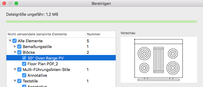 Eine Benutzeroberfläche wurde dem Befehl BEREINIG hinzugefügt, sodass Sie problemlos mehrere Arten von Objekten gleichzeitig bereinigen können.