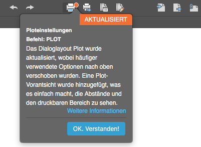 Neue Funktionen werden im Produkt mit einem Abzeichen markiert. Bewegen Sie den Mauszeiger über das Abzeichen, um eine kurze Beschreibung der Änderungen zu sehen. Wählen Sie OK, verstanden, um das Abzeichen und die QuickInfo zu entfernen.