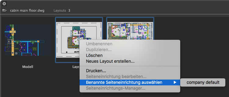 Sie können auch eine benannte Seiteneinrichtung anwenden, eine Seiteneinrichtung bearbeiten oder über das Kontextmenü der Registerkarte Layout drucken.