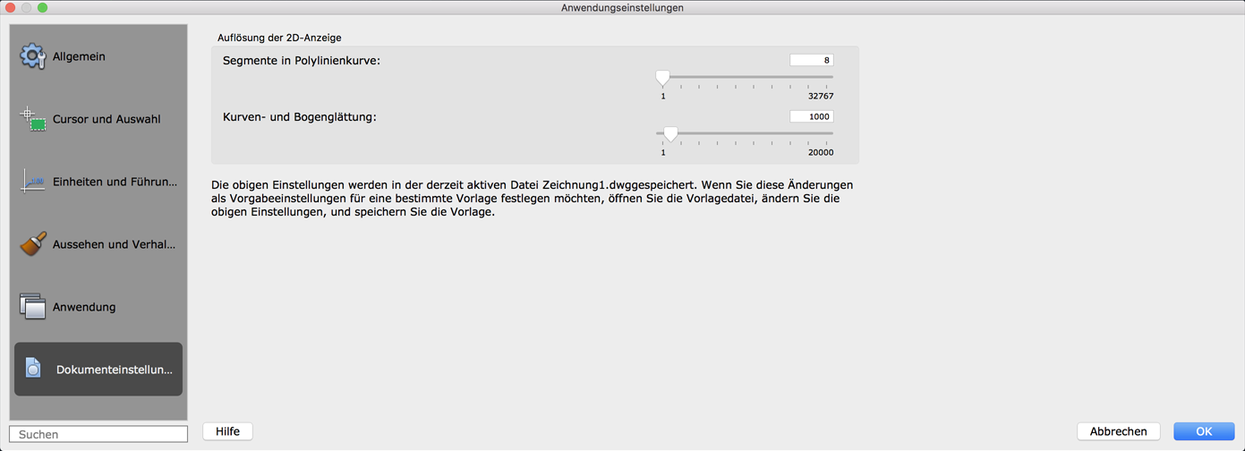 Steuert die Anzeigeeinstellungen für eine Zeichnung.