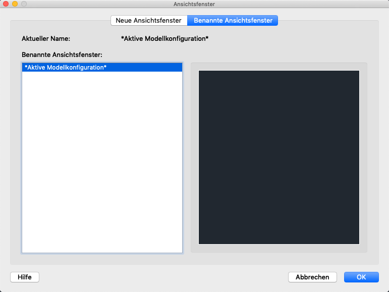 Zeigt den Namen der aktuellen Ansichtsfensterkonfiguration an.
