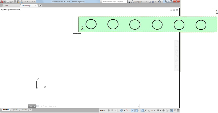 Wenn SELECTIONOFFSCREEN aktiviert ist, sind Elemente, die sich außerhalb des Bildschirms befinden (Punkt 1 in der Grafik liegt außerhalb des Hauptanzeigebildschirms) auswählbar.