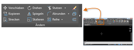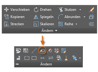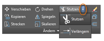 Eine gängige Methode ist die Verwendung des Befehls VERSETZ zusammen mit den Befehlen STUTZEN und DEHNEN. Dehnen und Stutzen sind zwei der am häufigsten verwendeten Funktionen. Klicken Sie auf das Werkzeug STUTZEN oder SCHIEBEN, oder geben Sie TR für STUTZEN oder EX für DEHNEN in der Befehlszeile ein.