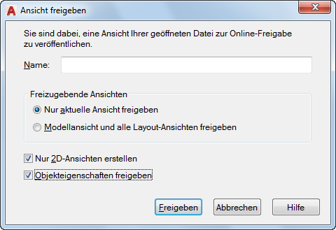 Publiziert eine Darstellung des aktuellen Bereichs oder der gesamten Zeichnung zur Online-Ansicht und -Freigabe. Dies erleichtert die Kommunikation und Zusammenarbeit mit Projektbeteiligten, ohne die DWG-Quelldateien freizugeben.
