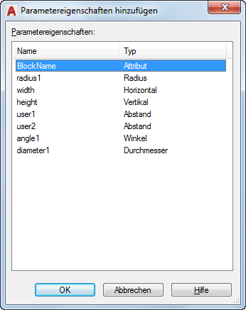 Fügt Parametereigenschaften zur Blockeigenschaften-Tabelle hinzu