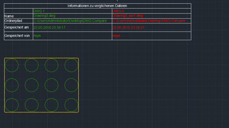 In der folgenden Abbildung wird gezeigt, wie Sie die Eigenschaftsdaten, die für den Vergleich verwendet zwei Zeichnungsdateien in Form einer Tabelle eingefügt, die in der Ergebnisdatei.