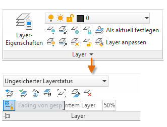 So können Sie den Fading-Grad schnell auf 0 % und wieder auf die vorige Intensität einstellen. Wenn Sie nicht mit der Multifunktionsleiste arbeiten, verwenden Sie den Befehl LAYISO.