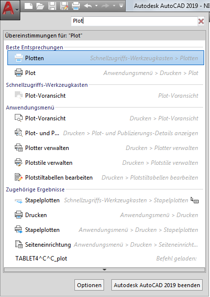 Hier ist ein Beispiel für die Suche nach dem PLOT-Befehl.