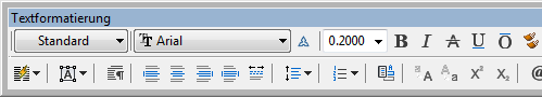 Anmerkung: Die Systemvariable MTEXTTOOLBAR steuert die Anzeige des Werkzeugkastens Textformatierung.