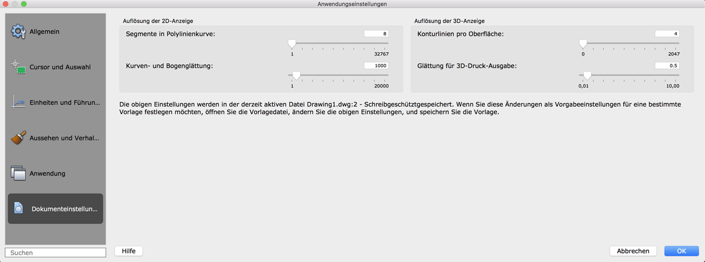Steuert die Anzeigeeinstellungen für eine Zeichnung.