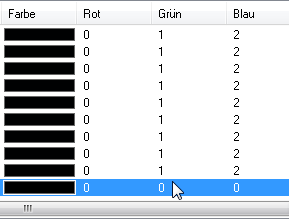 In der Palettenanzeige sehen Sie, dass viele Farben nicht verwendet werden. Diese nicht verwendeten Farben werden bei der Komprimierung der Palette gelöscht. Bei der Komprimierung werden auch die Indizes im Bild geändert, sodass die verwendeten Farben alle oben in der Palette erscheinen.