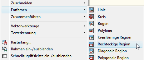 Klicken Sie auf Raster Klicken Sie, und ziehen Sie ein Rechteck um das Objekt Mandrel Rib Plate und dessen Schriftfeld. Klicken Sie dann mit der rechten Maustaste, und drücken Sie die EINGABETASTE, um die Region zu radieren. Weitere Übung: Radieren Sie noch andere Objekte, ausgenommen das Objekt Jig Bracket in der unteren linken Ecke. Verwenden Sie dazu einige der anderen Regionstypen aus dem Menü Entfernen. |
