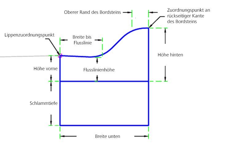 | Oberkante des Bordsteins | Oberer Rand des Bordsteins | Numerisch, positiv |