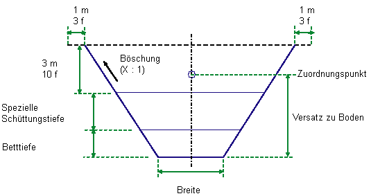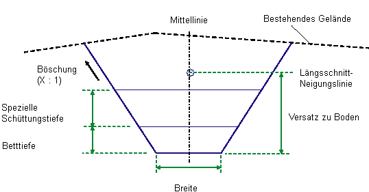 Dieser Querschnittsbestandteil erstellt ein flachen Grabenboden mit gleichen Böschungen und bis zu drei Schüttungsschichten.