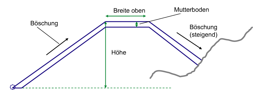 | Breite Oben | Breite dem oberen Rand des Lärmschutzwalls. | Numerisch, positiv |