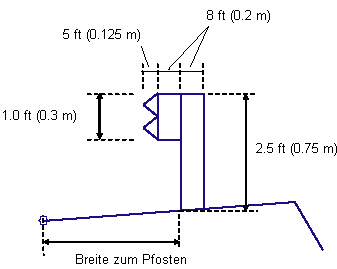 Hinweis: Alle Bemaßungen sind in Meter oder Fuß angegeben, wenn nicht anders vermerkt. Alle Neigungen sind in Länge/Höhe (zum Beispiel 4:1) angegeben, wenn nicht durch ein Prozentzeichen ("%") als prozentuale Neigung gekennzeichnet.