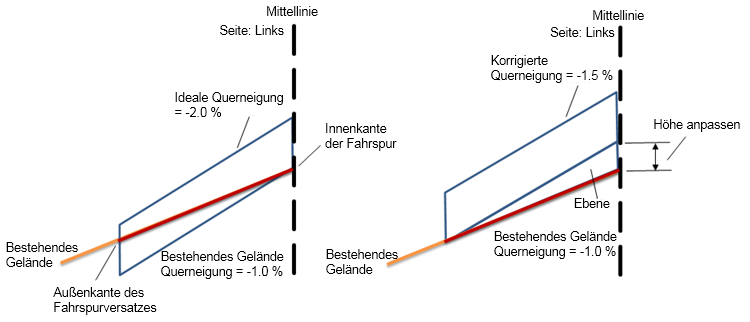| Korrigierte Querneigung | Die korrigierte Querneigung wird auf -2.5 % angepasst. |