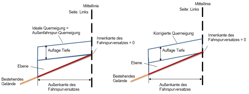 Fall 1-1: Ideale Querneigung ist größer als die bestehende Geländequerneigung