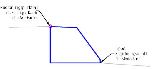 Der Zuordnungspunkt befindet sich am Auskragungspunkt des Rinnsteins, an der Rückseite des Bordsteins oder an der Fläche des Bordsteins.