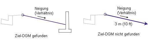 Es wird eine Verknüpfung vom Zuordnungspunkt nach links oder rechts mit der angegebenen Neigung verlängert, bis diese das Ziel-DGM schneidet.