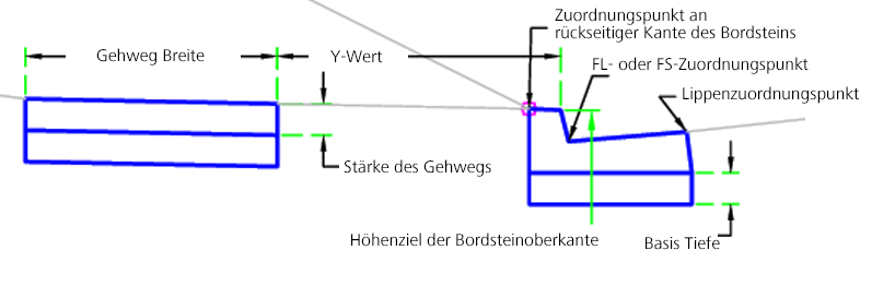 | Zuordnungspunkt | Gibt an, wo sich der Zuordnungspunkt des Bordsteins befindet | Lippe / Bordstein_Außen / Flusslinie/DGM | Lippe |