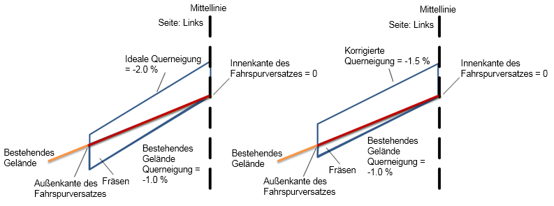 | Bestehende Geländequerneigung - ideale Querneigung | -0.4% |