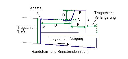 | Min. Grasstreifenneigung | Minimal zulässige Neigung von der Rückseite des Bordsteins bis zum Gehwegpunkt |