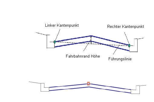Der Dachprofilpunkt (Versatz) befindet sich auf halber Länge zwischen dem linken und rechten Rand des Fahrbahnbelags.