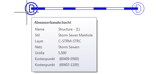In der QuickInfo werden eine Beschreibung des Kostenpunkts und die ID angezeigt, die diesem Schacht/Bauwerk zugewiesen wurde.