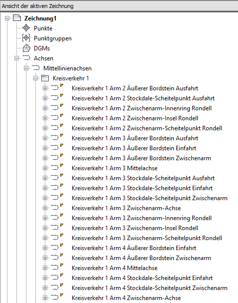 Verwenden Sie die Kreisverkehr-Sammlung in der Strukturansicht, um auf die Kreisverkehrsplätze in einer Zeichnung zuzugreifen.