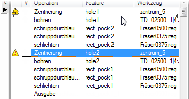 - Wählen Sie die Operation Zentrierung für hole2 aus der Liste aus und ziehen Sie dies über die Operation Bohren für hole1.